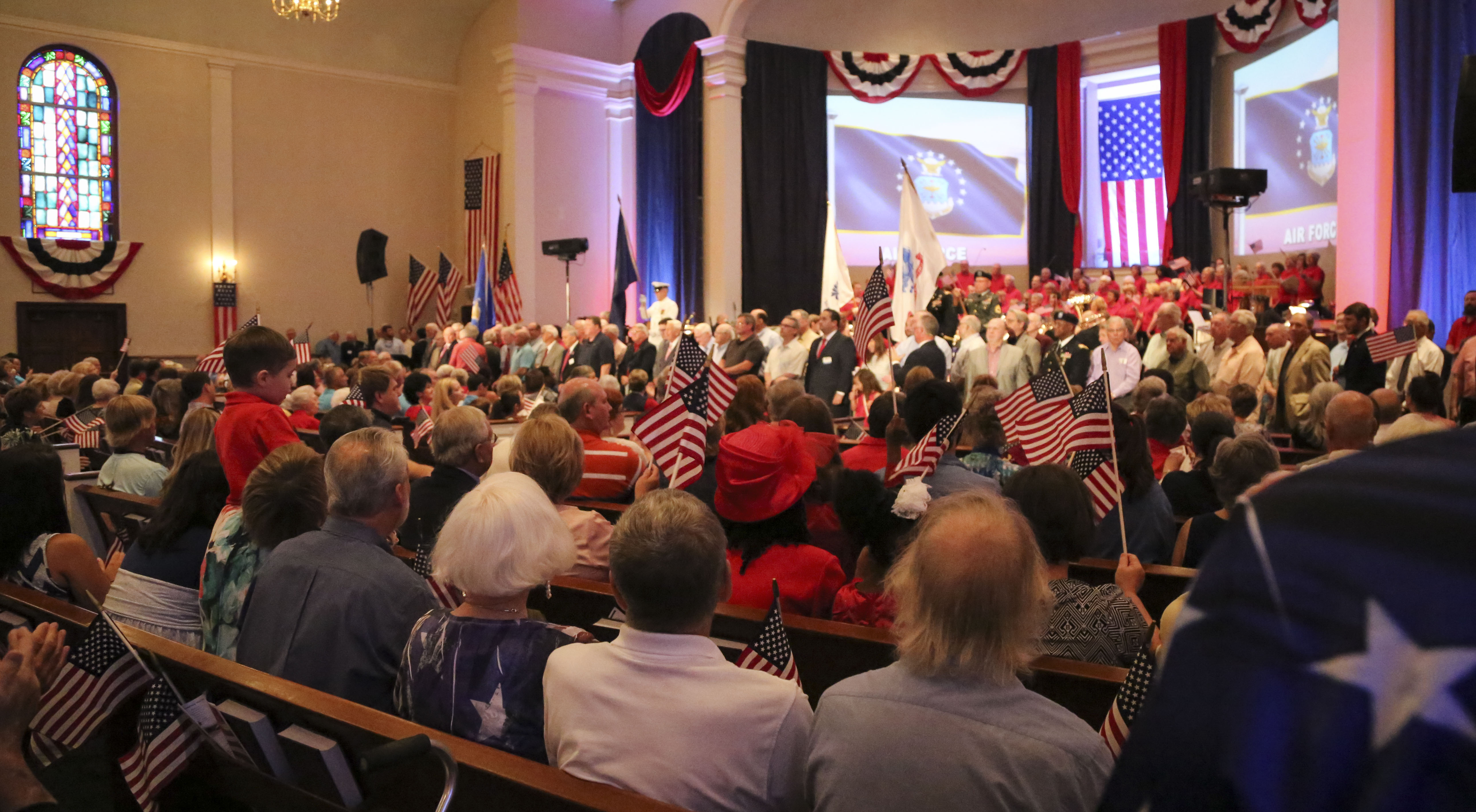 Throughout our history, men and women have answered the nation’s call to protect and defend those rights and freedoms we hold sacred. Our debt cannot be adequately paid – but our chance to honor our heroes cannot happen often enough. As the song from your branch of the service is sung, would all of our active duty military and veterans please come forward so that we may thank you for protecting our country.
